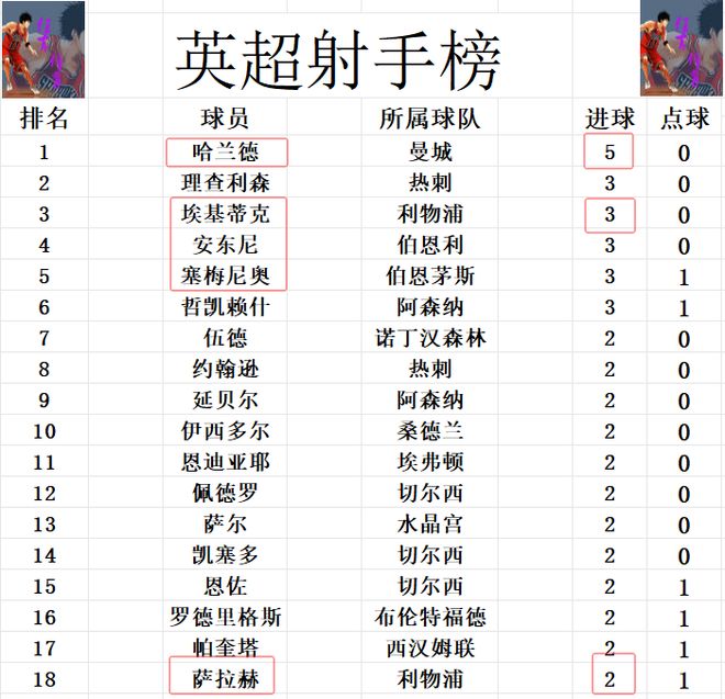 射手榜方面,哈兰德5球继续领跑,埃基蒂克昨晚打入一球后,追上理查利森,安东尼,哲凯赖什,塞梅尼奥等人3球并列第2。伍德,约翰逊,恩佐,萨拉赫等人则是2球挤入前十。
