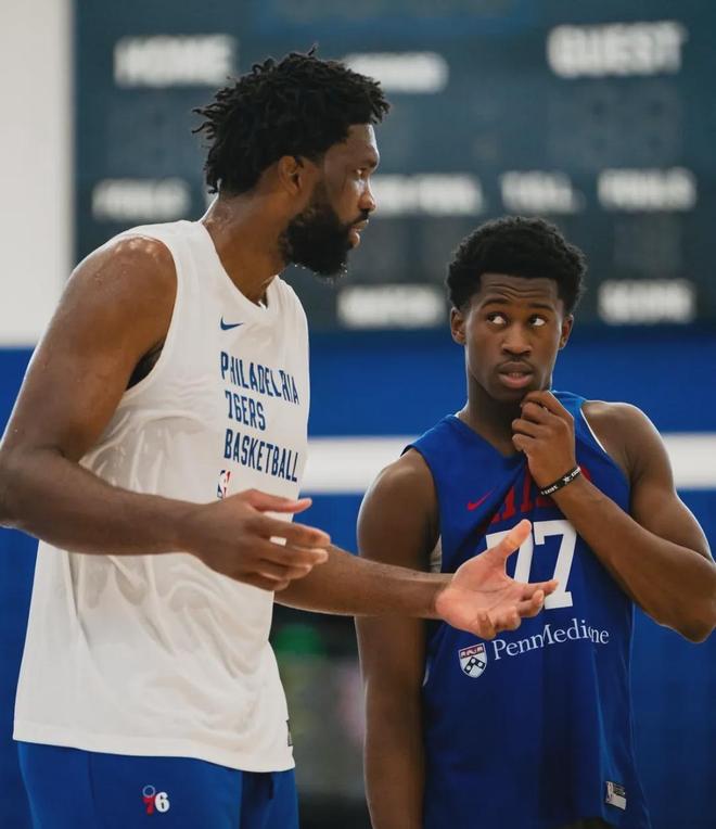 恩比德度过了一个低调的夏天,篮君印象中并没有在今夏写过恩比德的情况,因为他根本没有情况。恩比德没有做手术,没有养伤,他去减重,尝试减轻膝盖的负担了。 今天据FOX体育的记者Evan Sidery报道,恩比德出现在了76人的季前训练营上,明显看出瘦身成功。在76人的官方晒照里,还能看到恩比德在指点今年选中的探花秀埃奇库姆。