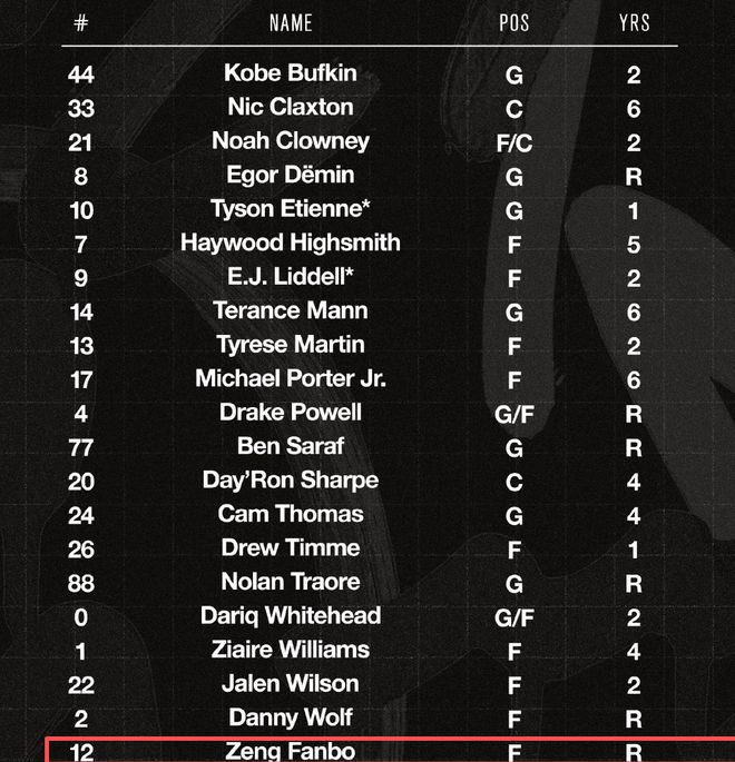 除此之外,篮网还公布了训练营21人大名单,我们也可以看到曾凡博的身影。不过后续曾凡博的压力还是非常大,虽然最后一个双向合同会在这份训练营大名单中公布,但这么多人,竞争起来会非常激烈。当然曾凡博的投篮能力和运动能力是获得发展联盟主帅认可的,但其他球员的天赋也不错,所以曾凡博还是需要保持百分百的斗志。 幸好之前杨瀚森的效益NBA球队应该都看到了,现在曾凡博只要稳住投篮命中率,还有防守的积极性,他还是有希望获得双向合同的。并且后续的中国赛曾凡博肯定会参加,他到时的上场时间会非常多,如果这一场曾凡博打好了,这对于他争取双向合同肯定会有积极带动,这都是比较好的趋势了。