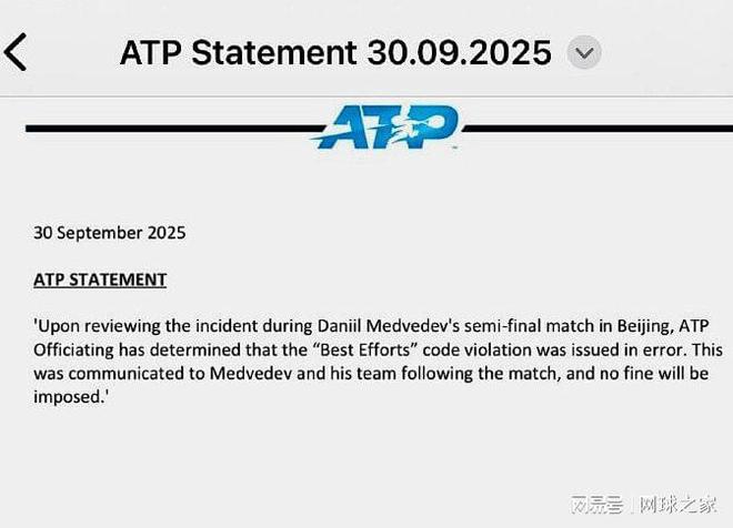 在梅总开始抽筋时,他一度想尽量拖延比赛,等待抽筋症状消失,结果被当值主裁判罚了一次“未尽全力比赛(not trying his best)”的非体育道德行为警告。一向得理不饶人的梅总对主裁一顿炮轰,并找来裁判长理论。赛后,ATP官方罕见发文,认定主裁的这个判罚是一个错误,撤销了对梅总的处罚。